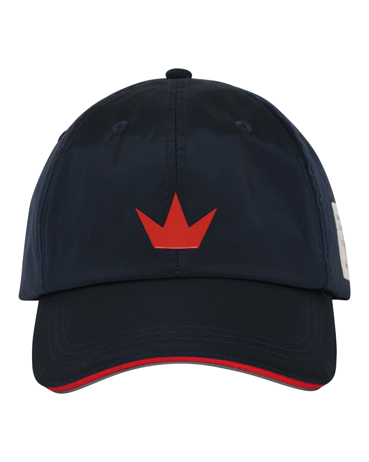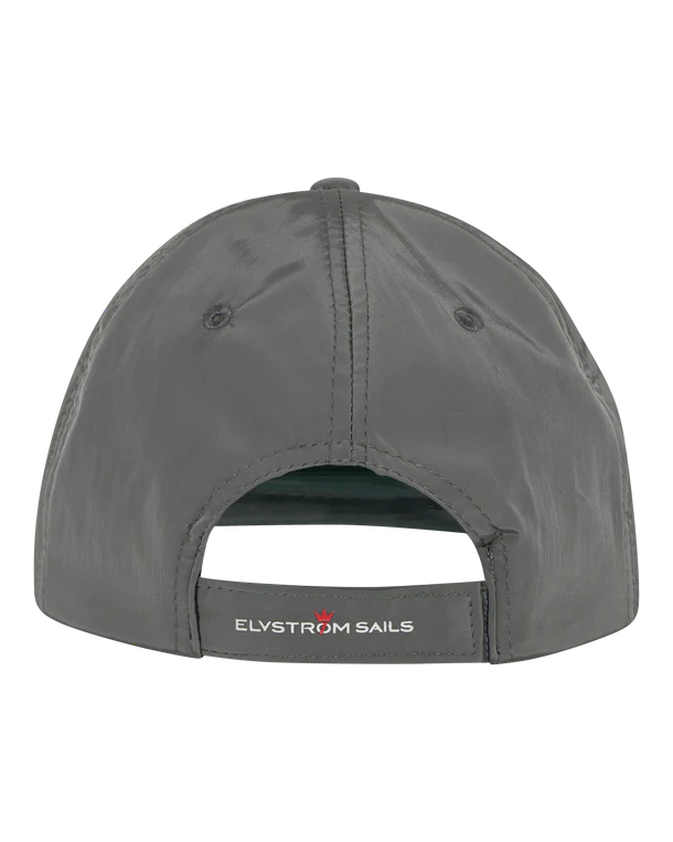 Polyester cap with contrasting color shade. The Crown logo rubber print is placed center front, the Elvstrøm victory badge on the left side and the Elvstrøm logo on the back strap of the cap.